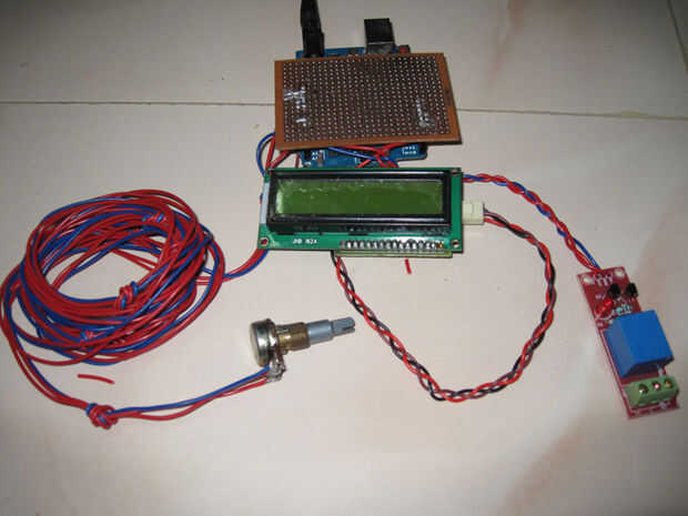 + 5V, GND-pantalla LCD de alimentación, potenciómetro, receptor IR