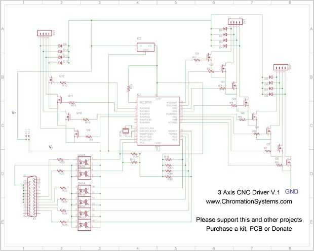 Controla a 3 motores paso a paso unipolares, para uso con máquinas CNC. Controlador simple con cierre automático de la bobina, para asegurar una operación eficiente. Opto-aislada para la protección de los soportes de P.C. más paralelo