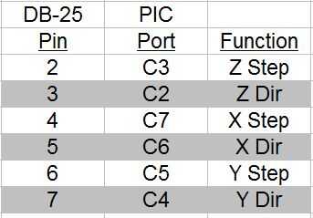 Puerto paralelo está configurado como sigue, hace referencia a los pernos en el puerto DB-25.