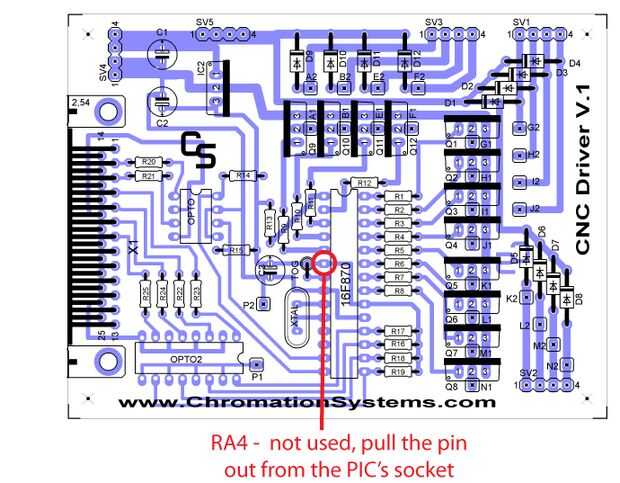 Su pero no totalmente necesario perno 6 en el zócalo de 28 pines (RA4 en la foto) (ver imagen) deben eliminarse, ya que hay un riel de alimentación positiva a través de él. Y asegúrese de llenar en su cojín de la soldadura y el orificio con soldadura.