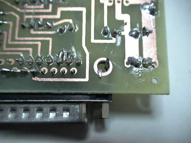 Un puerto de ángulo recto puede ser un poco difícil de conseguir, pero conseguir una pieza delgada de metal, pinzas o uñas, haga palanca y dirigir pernos en sus agujeros. Se utilizan solamente los pines 2-7 y 18-25, por lo que el otro los podía sujetarse fuera para facilitar la colocación.