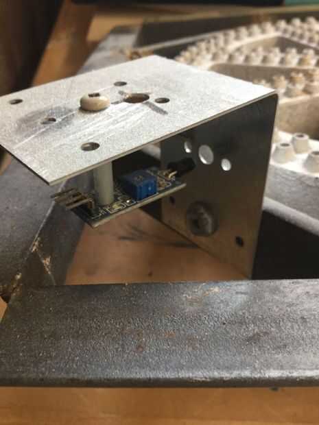 Hice un soporte en forma de L con un agujero para "ver" la llama y otro para permitir ajustar el bote de la sensibilidad en el tablero. La Junta se monta en un enfrentamiento. Tuve que cubrir la espalda y lados del sensor led para mantener la luz ambiental.