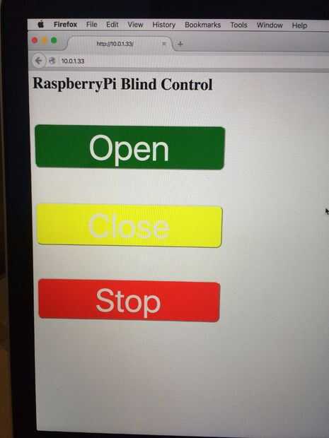 Mi RPi se encuentra en 10.0.1.33. Se trata de una red local. Este proyecto no es accesible desde internet. Yo personalmente no quiero a extranjeros abriendo y cerrando mis cortinas.