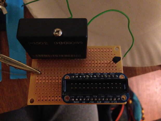 2. soldar el pin GPIO RPi 18 3.3 pin VCCy conector de tierra a los topes de la Junta de PCB.