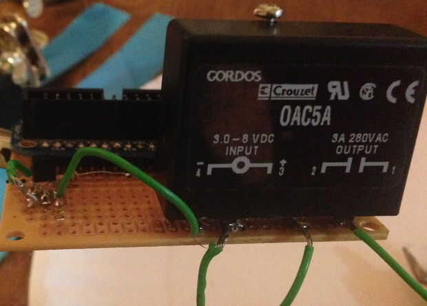 3. conectar la clavija de RPi 3.3 Vcc en el pin de relé DC positivo .