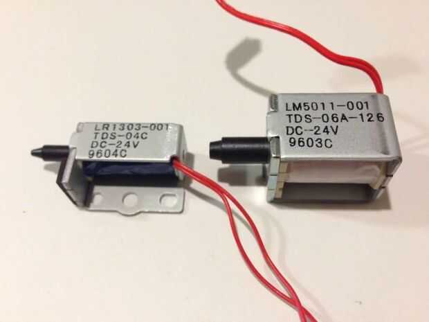 Nota: Los solenoides se pueden utilizar para tanto empujar o jalar. Si desea hacer ambas cosas sin modificar el cableado te se necesita añadir un par de relés para cambiar la dirección de la corriente a los solenoides semejantemente a un DC motor multiplexor:
