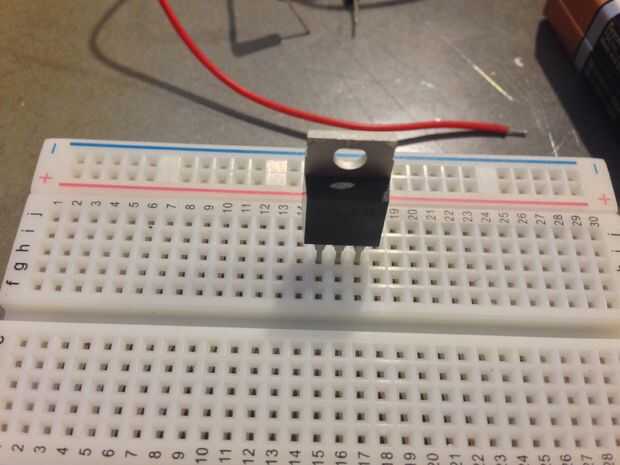 Primero coloque el MOSFET en la placa de pan, luego conecte el conector a los carriles de la energía. Coloque un cable de puente del carril de alimentación caliente a un lado de la puerta MOSFET y un segundo cable de puente en la otra puerta para conectar el motor. Coloque un cable de datos desde el pin de control a uno de lo PWM digital pasadores en LinkIt uno (es decir Pin 9). Luego conecte los cables de puente neutral y caliente a los solenoides.