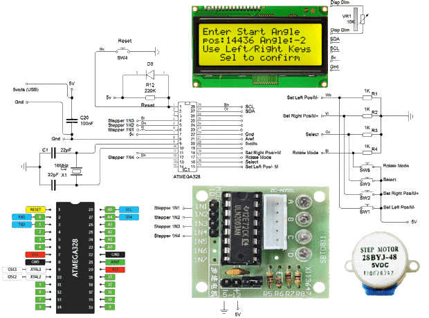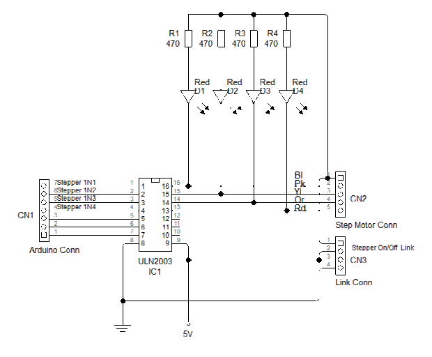 Foto 2 muestra el esquema del tablero de conductor del motor de pasos ULN2003