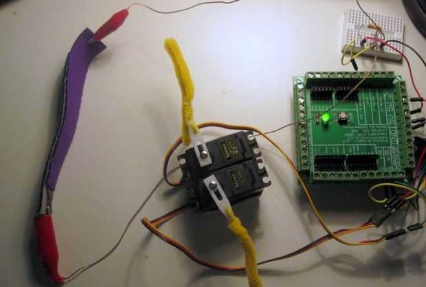Así puede intercambiar hacia fuera para diferentes sensores. Estoy usando un sensor flex de instructables. El sensor cambia la resistencia como está doblado. Es de [#REF ##].