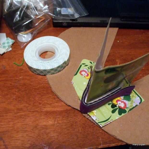 - Hacer una bisagra a retener (doblada pedazo de cartón)