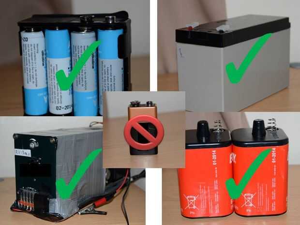 No recomendé de la batería de 9v /PP3 como que no va a durar mucho en todo e incluso cuando nuevos son incapaces de proporcionar la corriente necesaria para un arco de tamaño decente.