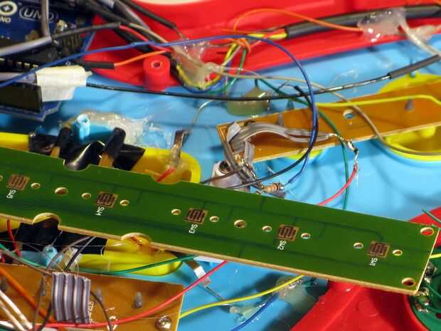 Mis expectativas para la barra de trémolo también eran demasiado altos. Esperaba un potenciometro o algo para detectar el ángulo de la barra, ya que puede girar alrededor, pero hay sólo una conexión - sin conexión interruptor. No importa, yo simulé una oscilación en el código de java para ser más "realista" en el juego.