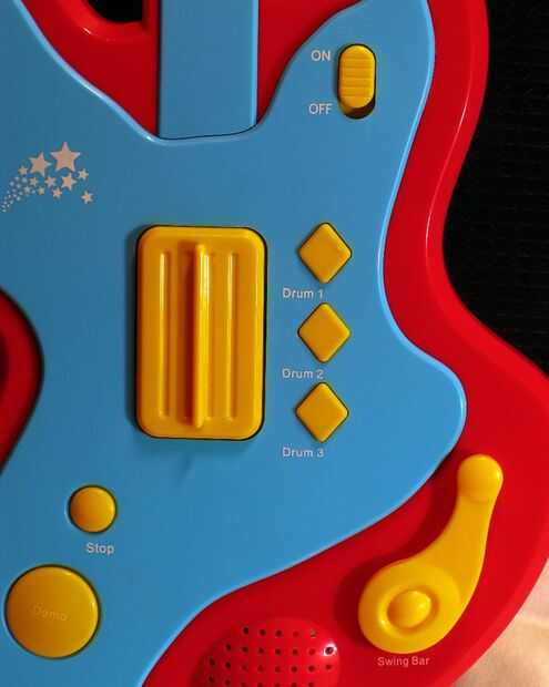 La única decepción fue el rasgueo. No me lo esperaba 2 botones para rasgueo hacia arriba y hacia abajo. Está bien que el juguete, pero para jugar un juego de ritmo, no es aceptable, porque resulta difícil rasgueo rápidamente arriba y abajo. Lo solucioné de otra manera.