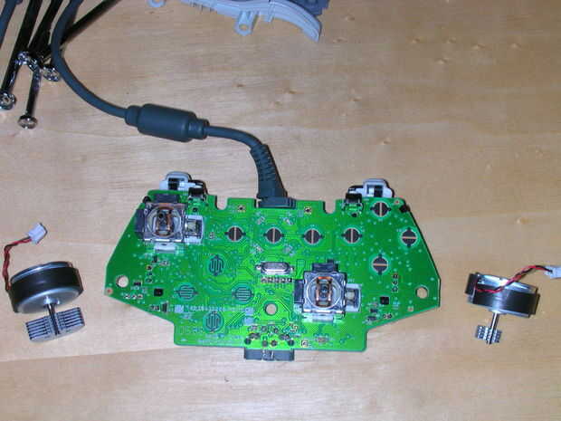 Quité todos que los tornillos sosteniendo el mando 360 juntos, desconectado el motores de vibración y listo, ya tienes a ti mismo un circuito agradable y ordenado. No tienes que usar mucha fuerza al hacer esto, si usted no puede conseguir abierto, que probablemente has pasado por alto el tornillo que se encuentra debajo de la etiqueta engomada.