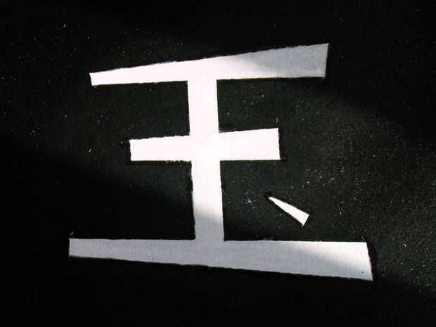 Tomé un trozo de película de plástico, corté las letras que yo quería y luego intenté utilizar pintura en aerosol blanca. Desafortunadamente, todo lo que pasó fue eso capilaridad levantado su fea cabeza y volvió las cartas de blobs. Lo cubrieron con una nueva capa de negro y de la mano pintado las Letras con un tipo diferente de pintura. Resultó bastante bien. Hasta que quise borrar la capa que era.