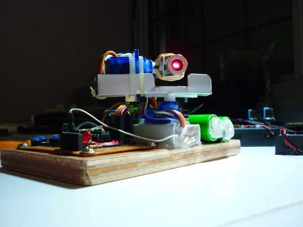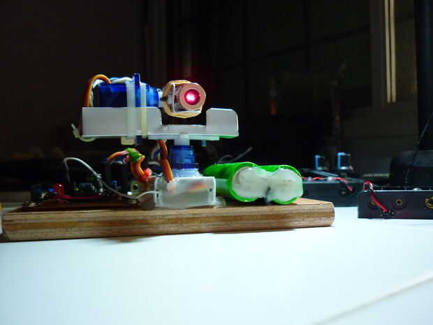 En el futuro planeo poner una cámara (Raspicam /) en lugar de un láser y utilizarla para tomar fotografías automáticamente. Con el pan y tilt sistema en el también debe ser capaz de hacer fotografía panorámica.