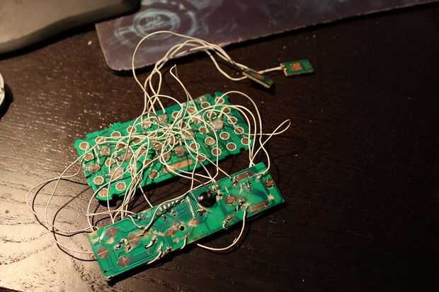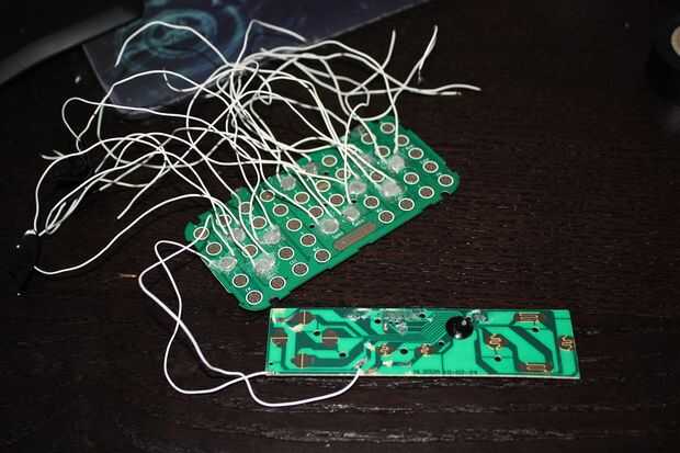 Procedí a cortar los terminales así que había aislado conduce a cada botón y luego soldar los cables de mi teclado a los botones en el controlador de snes, como se puede ver en la primera foto abajo.