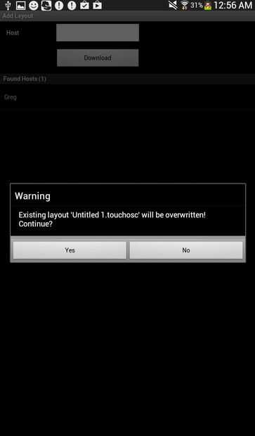-Después de crear una interfaz de usuario que te gusta, abra de tu smartphone / tablet y la bobina de TouchOSC (haga su dispositivo está conectado a la misma red Wifi que tu ordenador)