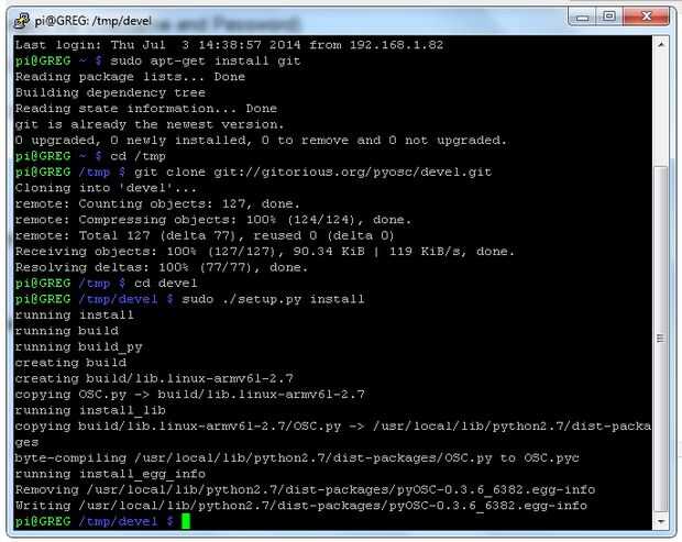 Ahora que tenemos nuestra instalación UI (interfaz usuario), a continuación tenemos que instalar pyOSC para python para que nuestro R-Pi puede comunicarse fácilmente con nuestro dispositivo utilizando el código que escribimos.