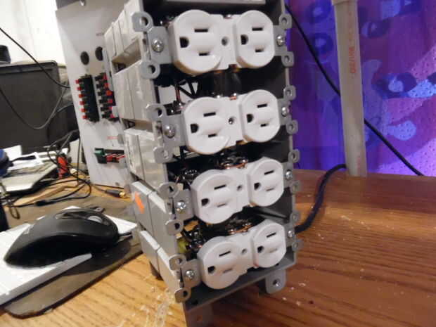 Tengo 4 enchufes de AC en una caja eléctrica de pared montada dentro de una caja de PC ha configurado como una fuente de alimentación del Banco. Después de utilizar las salidas encontré que funcionaba realmente a dónde y cómo tengo montado por cómo tengo cosas en mi banco, razón por la cual construí este panel de control de AC.