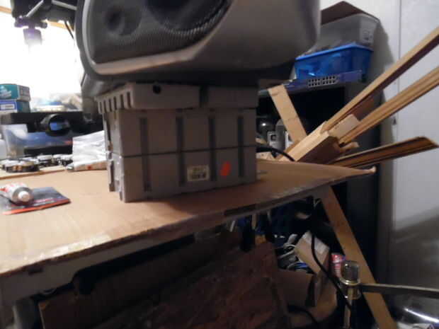 Con los espalda/fondos cortados de cada caja eléctrica y aplicar el cemento de goma a las espaldas de cada caja y poner cajas espalda t detrás, coloqué la Asamblea con un abierto cara. Coloqué los fondos que ha cortado encima de la caja así lo decidí utilizar como peso no causaría los lados fluctuar. Los fondos también ayudarán a distribuir el peso uniformemente.