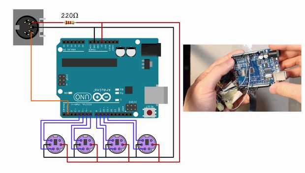 Cable el PS/2 y MIDI puertos en Arduino como sigue: