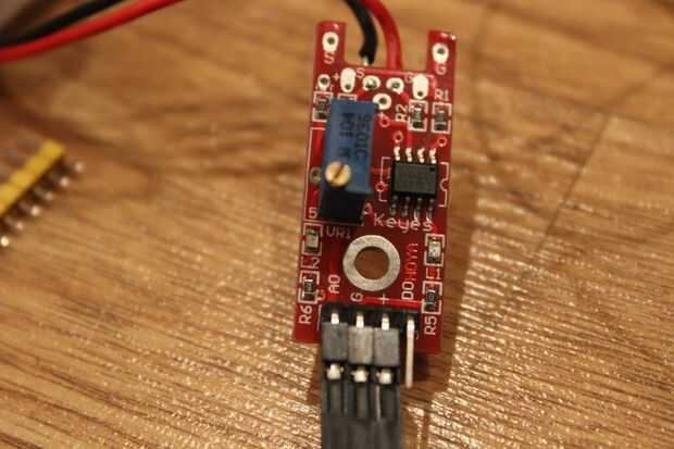 Tiempo para agregar el corazón de nuestro proyecto: sensor de la llama. Por suerte todo el trabajo con el módulo es hecho por nosotros, así que tenemos que hacer es adjuntarlo a la arduino mediante cables dupont mujer. Tenga en cuenta que quizás tenga que modificar el PCB en el sensor de la llama para que sea compatible con la caja de mi proyecto. Si usted tiene un sensor con cables LED corto, deberás utilizar un soldador para extender los cables. Por esta razón se aconseja el que uso de un módulo que ya tiene mucho.