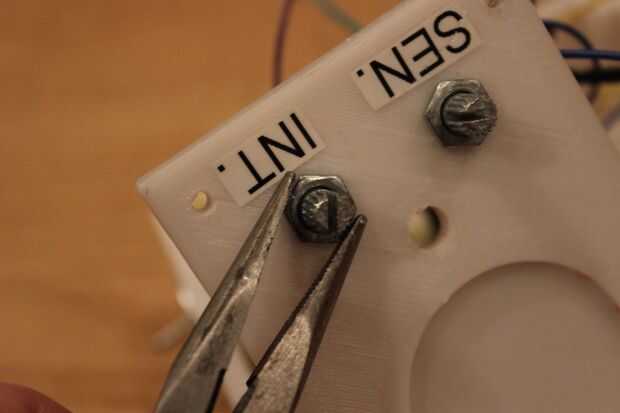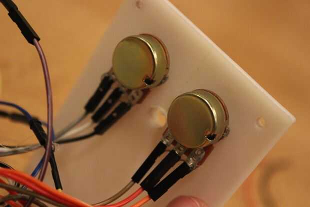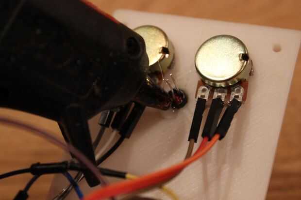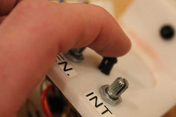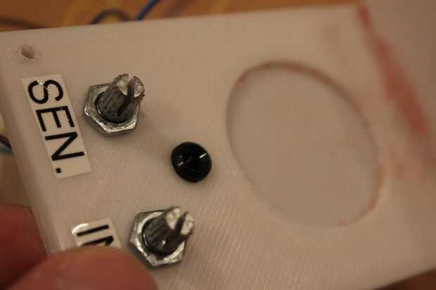 Ahora podemos montar todos los botones, LEDs y asegurar que todo es a prueba de futuro. Con un alicates de nariz de aguja, asegure los potenciómetros y el interruptor de reinicio, con tuercas. Finalmente presione el indicador y fuego IR LED del sensor a través de sus orificios y asegurar con pegamento caliente.