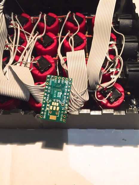 - La soldadura de uno de los pasadores de cada botones en el orden de los pines Teensy, saltando sobre los pines 1, 2 y 8 (estos se utilizarán para el 74HC595).