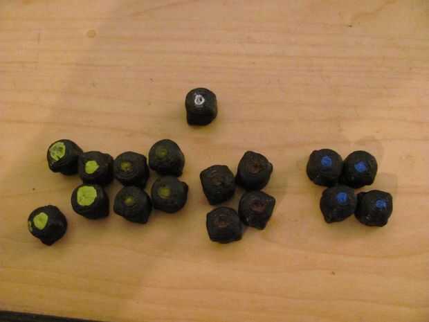 Después de que termine la impresión, coloqué una gota de esmalte de unos colores diferentes para poder decirles aparte cuando están instaladas en los actuadores.