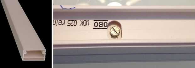 Al principio obtener un cable plástico raceway/conducto como la de la imagen. Si no puede obtener a este tipo de conducto no hay problema, pero asegúrese de que su conducto puede albergar la electrónica (no comprar un conducto mucho más pequeño). Si difieren de las dimensiones del conducto, también tenga en cuenta que tienes que modificar las dimensiones de la tira de madera y el bloque.