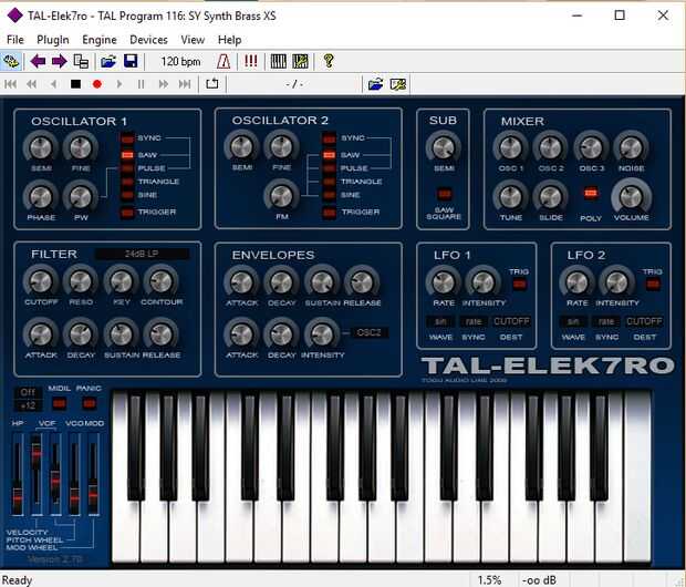 Porque no tenemos ningún botón instalado, el Arduino Nano entrará en modo demo y enviar una melodía a través del convertidor de midi2usb a su sintetizador software. El sintetizador convierte esta información midi para que vienes aquí de su equipo de sonido!