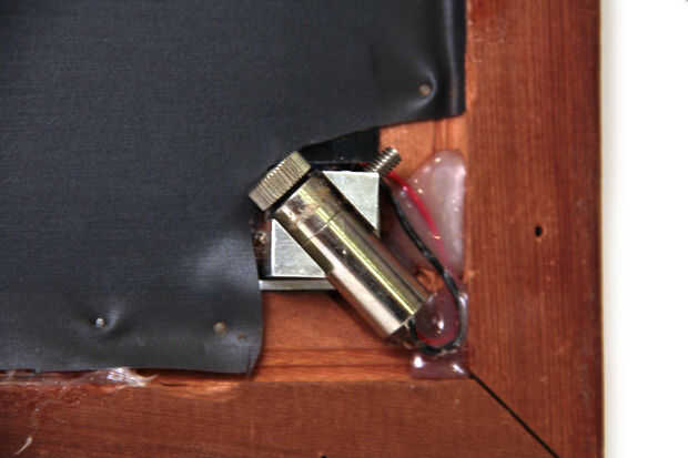 Ahora Afloje el montaje de láser y ajustar el láser y la montura hasta que la luz láser paralelo a la superficie del cristal, alrededor de 1mm sobre la superficie. Se necesita girar el laser en el Monte y ajustar la posición vertical de la montura para ponerse en posición. Uno que haya encontrado la posición óptima, apretar sus tornillos para pones los soportes. Repetir este proceso para los lasers restantes.
