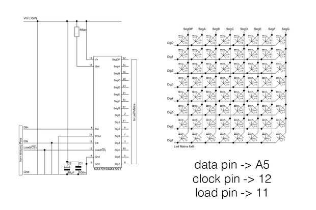 Tendrá que seleccionar un valor de RSet del circuito Max7219 basado en la specificaltions de su LED. Para obtener información acerca de cómo hacer eso aquí.