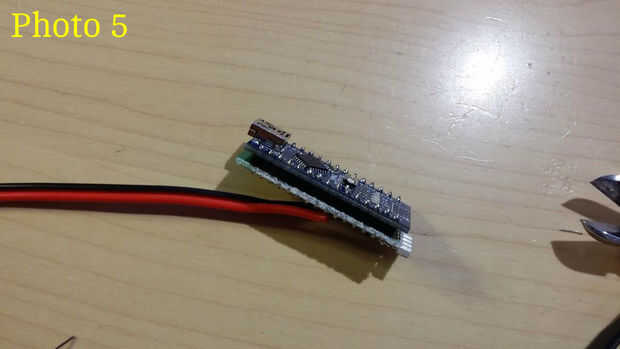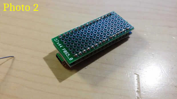 - Suelde el arduino en el tablero para que el USB está en el lado opuesto de dicha fila adicional, Foto 2.