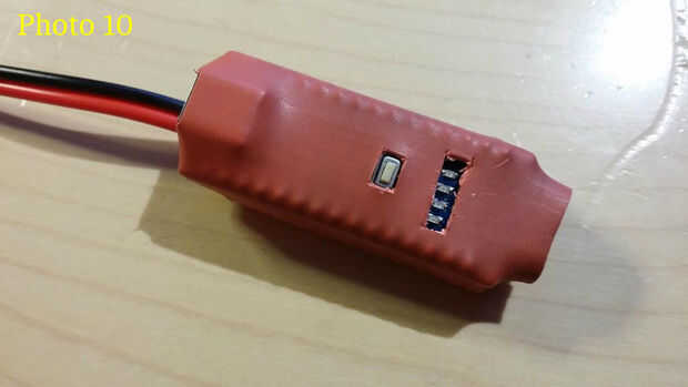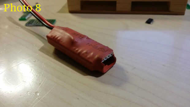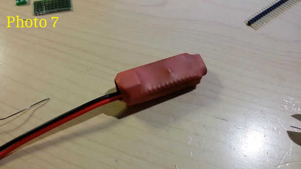 A continuación coloque el tubo del encogimiento sobre arduino, calentarlo y corte a cise. Recuerde hacer agujeros para el boton de reset y los LEDs de la arduino, Foto 5, 6, 7, 8, 9, 10.
