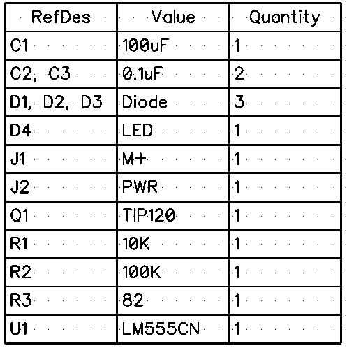 Designadores de referencia coinciden con indicadores situados en la PCB y actúan como guía en la elaboración de su controlador PWM 555.