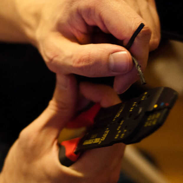 Cable de alimentación de PID: para tirar hacia fuera energía del controlador PID cortaremos nuestro alambre de doble cadena por la mitad (la otra mitad se utilizará para el cable de control del relé). Ahora dividir el cable en mitad de una media pulgada. Tira de los extremos para exponer el alambre de cobre. Elegir terminales de anillo que se caben con los tornillos en la parte posterior del controlador PID y utiliza al prensado para unir los terminales de anillo a los extremos del alambre. Separar y pelar los cables en el otro extremo de la cuerda como antes---más tarde este fin de la encrespadura y fije el cable de alimentación principal.