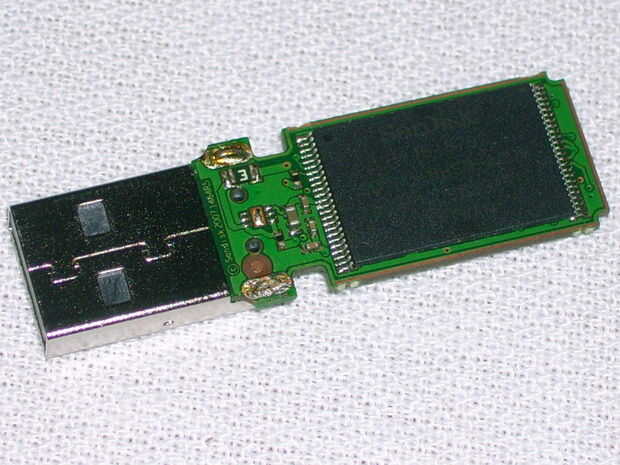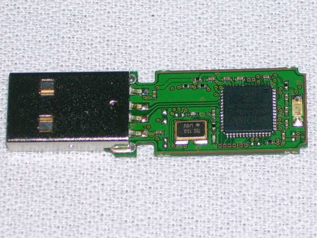 Quitar el conector USB de la unidad fue bastante más difícil. Después de varias tentativas fracasadas de desoldar las lengüetas de los lados, finalmente fui a un método de fuerza bruta. Con una dremel con mucho cuidado corte la lengüeta metálica en el tablero y luego desprendió las patillas del conector. Después de limpiar las almohadillas de soldadura, entonces conecté esto al cubo con un trozo corto de cable de cinta.