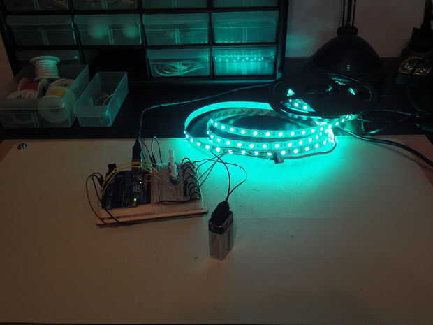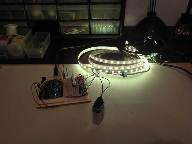 Este Instructable cubre el montaje de un circuito capaz de ing de PWM (modulación de anchura de pulso) una tira de LED RGB 12v 9 y programación un Arduino para desplazarse a través de una gama de colores. Discutir cómo montar un transistor a un disip