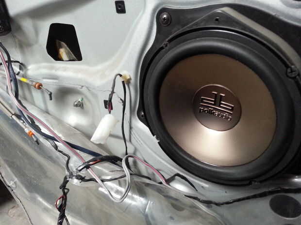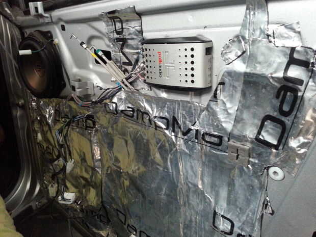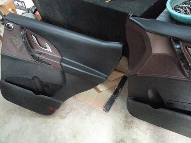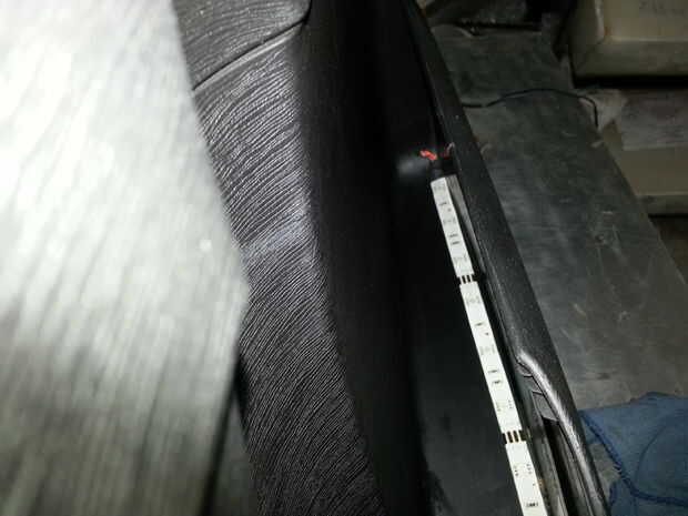 La parte más difícil fue instalación de tira de LED en los laterales de la puerta. Las imágenes muestran cómo fuimos de instalarlos. Esto se repitió para los 4 frente y parte posterior paneles de puerta. Fue ocultado el cableado y conexiones traídas al panel cerca de los pedales.