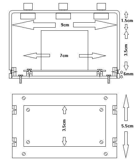 He creado un diseño básico en MS-paint para lo que tenía en mente. Las dimensiones tiene alterado por unos mm pero fue sobre todo fiel al diseño. El acrílico utilizado fue aproximadamente de 2mm de espesor. El espesor del acrílico juega papel importante en la selección de dimensiones.