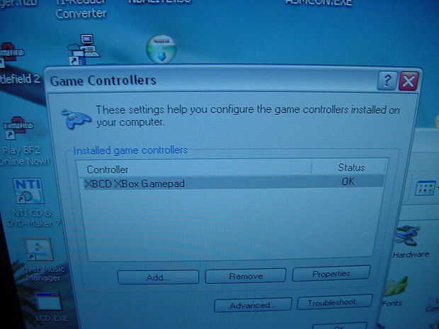 Para las conexiones y si ha instalado correcto abrir el XBCD Utility y seleccione gamepad1 (o similar) luego abrir controladores de juego de Microsoft y comprobar.