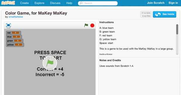 Alguien hizo un maravilloso cero "Color juego" que usted puede encontrar aquí: http://scratch.mit.edu/projects/11015433/.