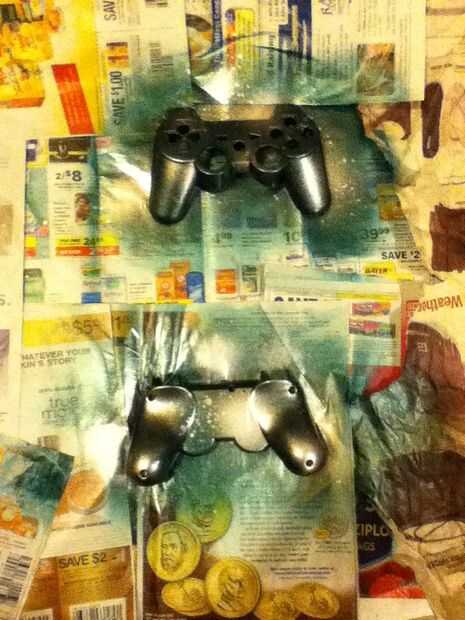 Ahora viene la diversión parte. Asegúrese de que su controlador está libre de cualquier suciedad, polvo, suciedad o cualquier otro material extraño que no Haz cubierto con pintura. Utilice un húmedo cepillo de dientes y friegan cada controlador shell mitad dentro y por fuera. Aunque no es necesario pintar el interior, sigue siendo una buena idea para limpiarlo. Una vez que las conchas estén secas, coloque un montón de periódico y coloque cada mitad en él. Sacuda su lata de pintura en aerosol para largo sin embargo dice y aplicar capas delgadas unos pocos al controlador después de cada capa se seque. Si usted está haciendo algún tipo de diseño, tales como rayas, pintar primero algunas capas de los colores que desea que las rayas que. Cuando aquellos se secan completamente, vuelva a colocar los dos trozos juntos sin los tornillos o componentes internos. Todavía debe tener en su lugar. Corte tiras delgadas de cinta de pintor y envuélvalos alrededor del controlador de cualquier forma que desee. Cuando usted consigue un diseño que te gusta, un cuchillo y corte la cinta el encuentro de cada mitad de las piezas de concha. Las ranuras deben guiarte fácilmente. Luego tomar el controlador aparte otra vez con la cinta aún y verdadero dos mitades de la pintura el color principal que desee. Cuando está completamente seca, retire la cinta. Hice una mancha plata angustiado mirar en mi controlador. Yo sólo rociado poco chorros con pintura de plata hasta que me ha gustado