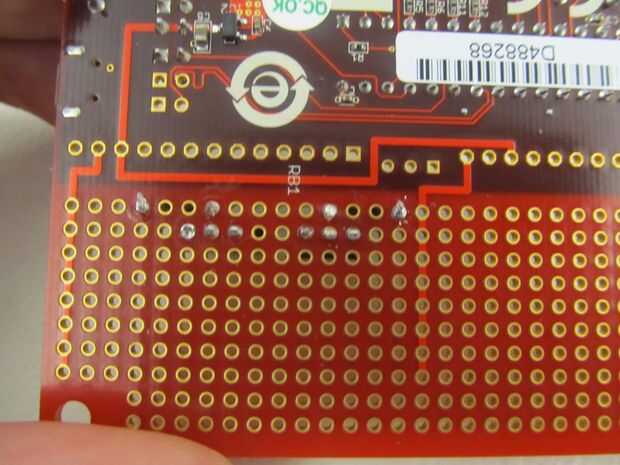 Deslice sus diodos en la placa a través de los orificios que se muestra arriba.