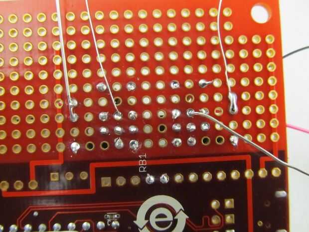 La última cosa que usted necesita tomar nota de está cómo soldar los cables en mi tarjeta. ¿Ver cómo el exterior de la soldadura de granos salto sobre en el riel de alimentación? Eso es cómo sus motores se conectan a la corriente.