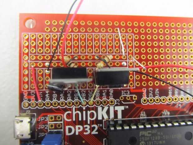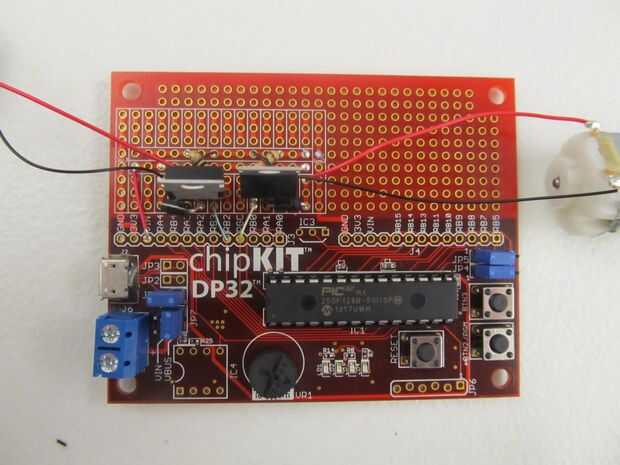 Es importante que conecte la primera barandilla (uno en la parte inferior) a la potencia del VIN y no el poder de 3V3. Los 3V3 es la Junta de regulación 3,3 v tensión de red, mientras que VIN es energía cruda, no regulada de la batería. VIN es equivalente a ejecutar una línea directamente de la batería para el motor, y eso es exactamente lo que queremos!
