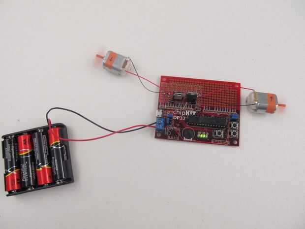 Una vez tienes tu batería conectada, conectar el puente cerca de los terminales de tornillo (mencionados) al modo de "pilas". Debería ver sus motores de salto a la vida!