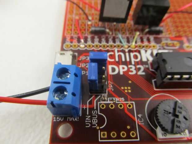 Utilice el destornillador para fijar los cables de la batería a la DP32. Asegúrese de que usted este alambre correctamente. Revisa la foto de arriba. ¿Ver cómo el cable rojo se conecta a la terminal más alejado del puerto USB? Si cambiar estos por accidente, podría freír la placa entera!